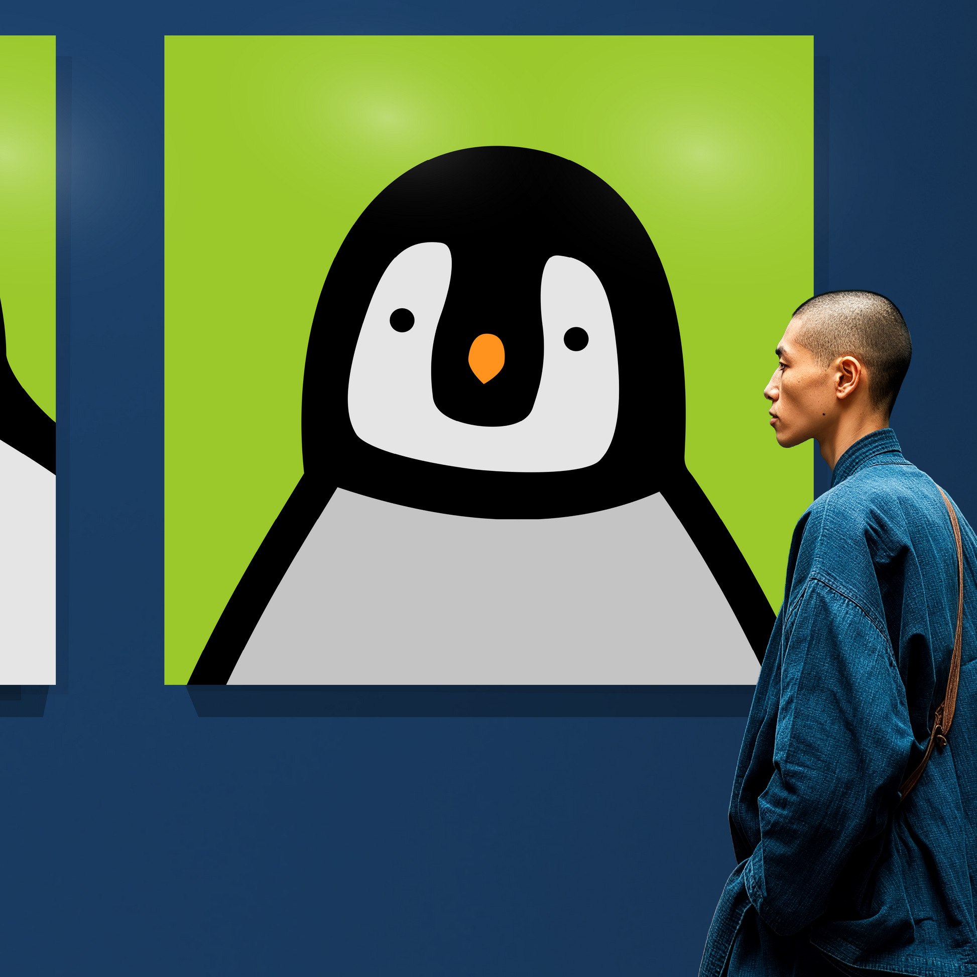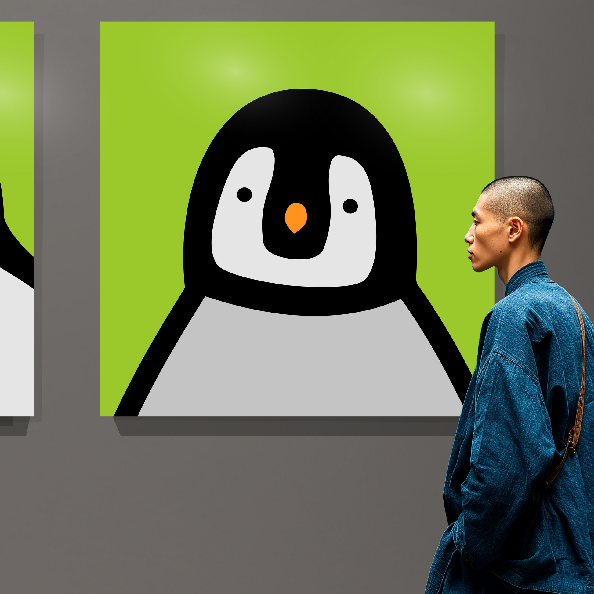 Penguin portrait chick green